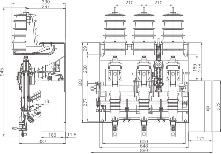 The switch disconnectors series FKN12 are increasingly adopted in MV installations, owing to their superior interrupting features and to their capability to withstand the short-circuit currents which occur mainly as consequences of faults in distribution networks. The versions combined with HRC fuses are particularly suitable for the protection of distribution transformers up to 1250 kVA The use of FKN12, designed for installation in compartmented switchboards have the following advantages: -Full segregation between the busbar compartment and the cable compartment, with switch disconnector in both "closed" and "open" position. -The moving contact, of the sliding vertical type, can be easily checked and cleaned with live bus-bars and earthing switch (ES) closed. -No adjustment is needed in the tripping mechanism of the switch fuse combination and of the ES: they are built together in a single unit, which is adjusted and checked during assembly in the factory, before the final test.
