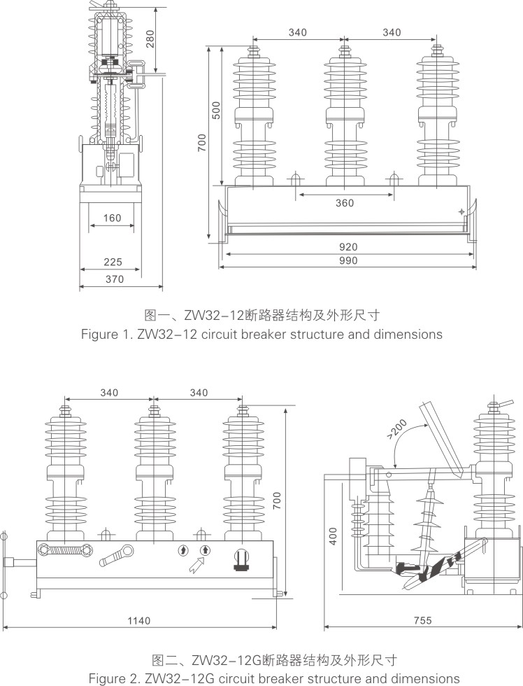 ZW32-12 outdoor AC high voltage vacuum circuit breaker (hereinafter referred to as circuit breaker) is an outdoor power distribution equipment with rated voltage of 12kV,24kV,40.5kV and three-phase AC 50Hz. It is mainly used to break and close the load current, overload current and short circuit current in the power system. It is suitable for protection and control in power distribution systems of substations and industrial and mining enterprises, and places where rural power grids are frequently operated. The circuit breaker has the characteristics of small size, light weight, anti-condensation and maintenance-free, and can adapt to harsh weather conditions and dirty environment.